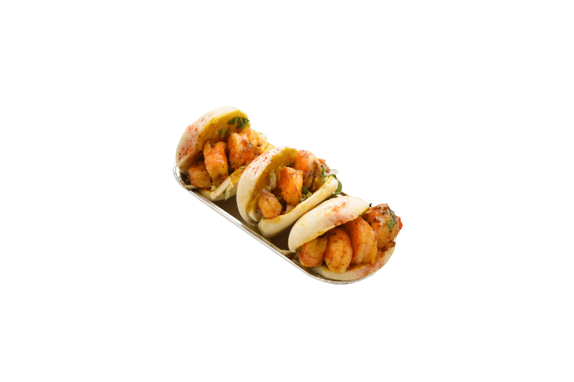 pitabroodje gevuld met gamba’s, kokoscurry marinade en kruiden.
